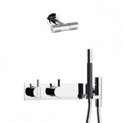 Dreilocharmatur mit Doppelschwenkauslauf, bestehend aus: 2 Ventile S50 und einem schwenkbaren Auslauf 090, ohne Ablaufgarnitur, Ausladung 200 mm.
