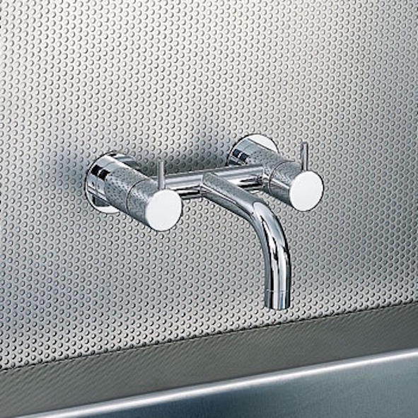 Waschtisch-Zweigriffmischer, Wandmodell für Aufputz-montage mit Schwenkauslauf, Ausladung 170 mm, Ventile 90° drehbar, S-Anschluss 140-160 mm.